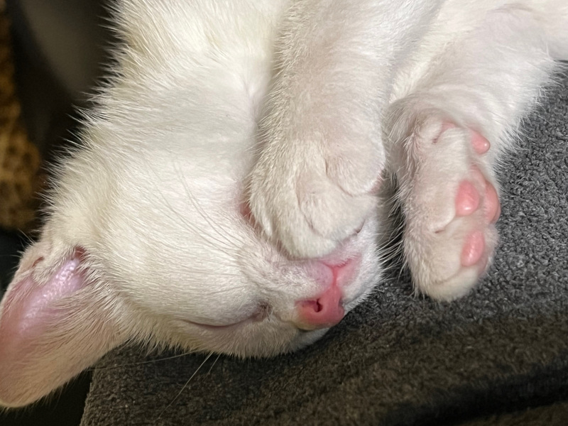 I visit Little Devil regularly. (He remembers me!) I can tell you that he has two modes: a sweet, sleepy kitten and a hellraiser. See the hellraiser in action below.